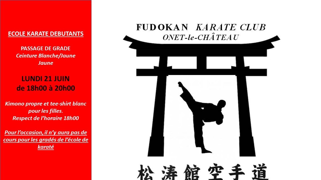 Les karatékas devront se présenter à l'heure et avec un kimono correct.