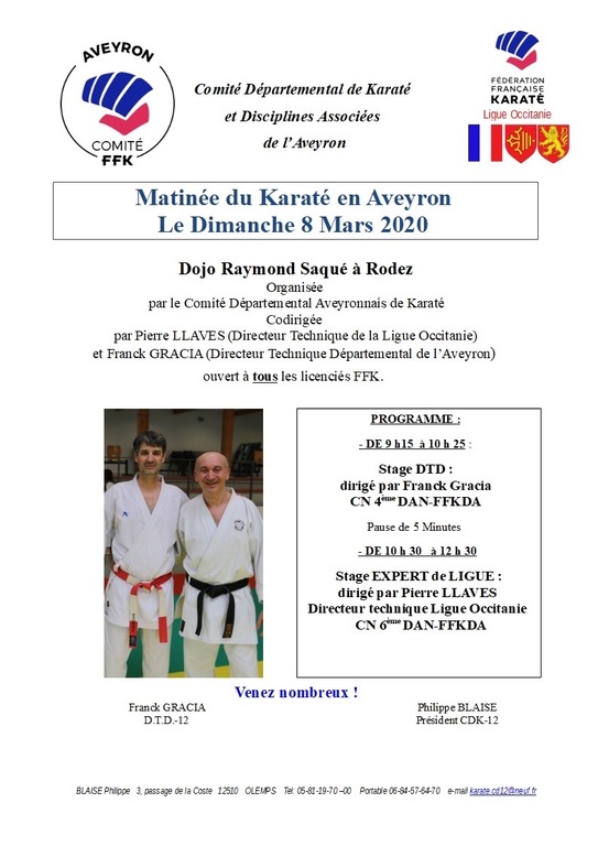 Matinée du Karaté en Aveyron 2020 organisée par le CDK12