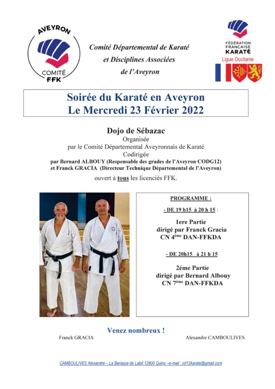 Stage organisé par le Comité Départemental Aveyronnais de Karaté