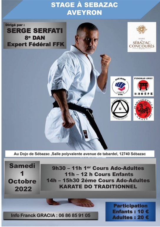 Premier stage de Karaté organisé par l'entente des clubs Baraqueville/Olemps/Onet/Sébazac pour débuter la saison 2022-2023 avec Serge SERFATI CN8 - Expert Fédéral -