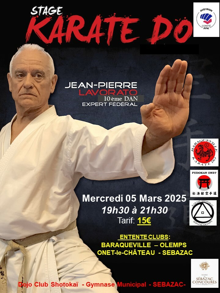 Stage Karaté organisé par l'Entente des clubs Baraqueville/Olemps/Onet-le-Château/Sébazac ouvert à tous les licenciés de la FFKDA.