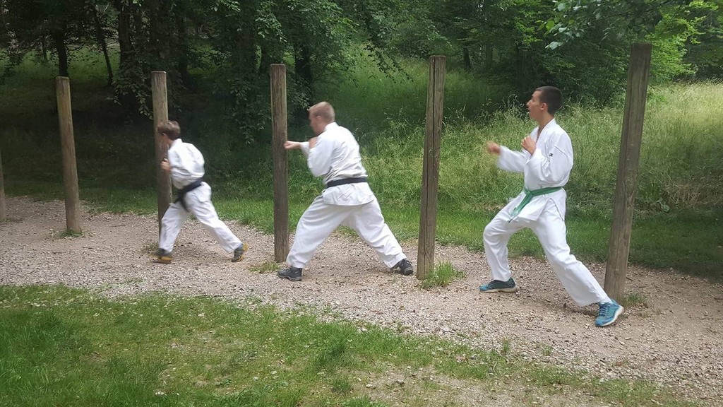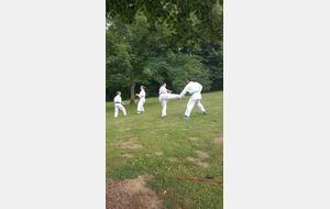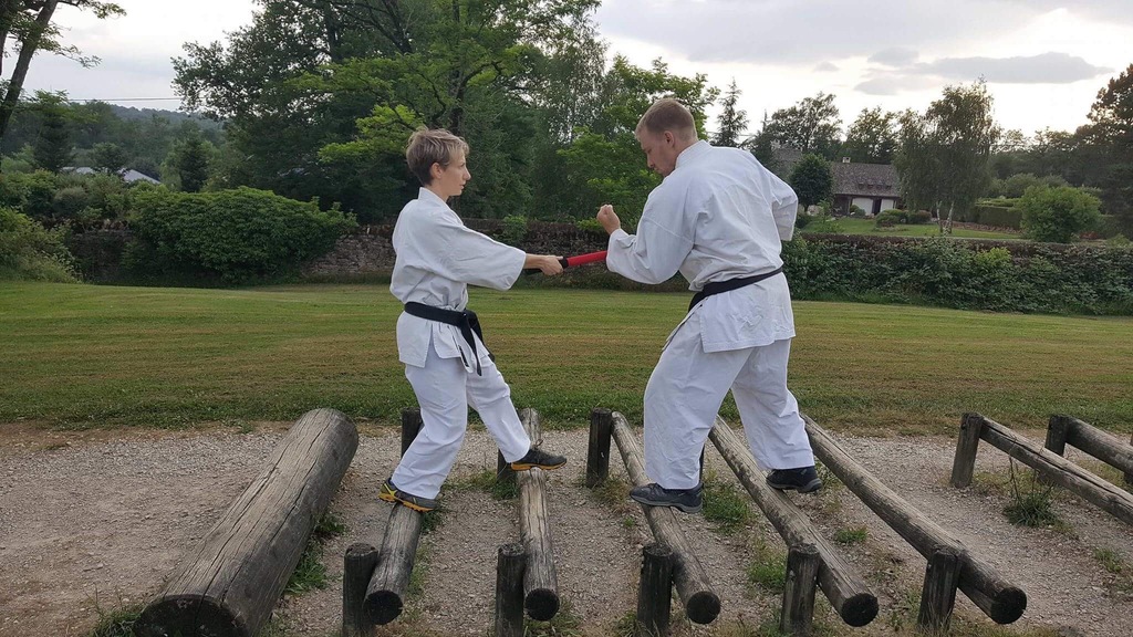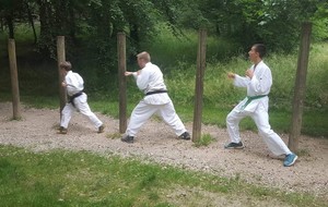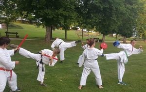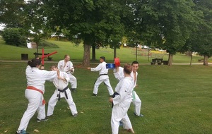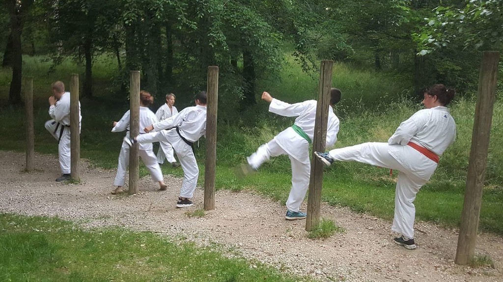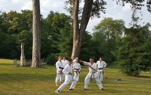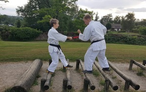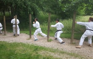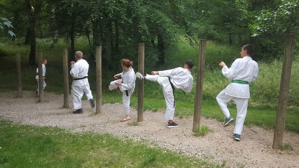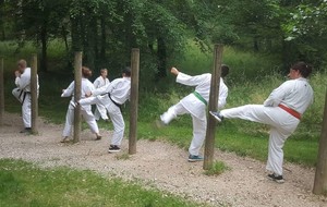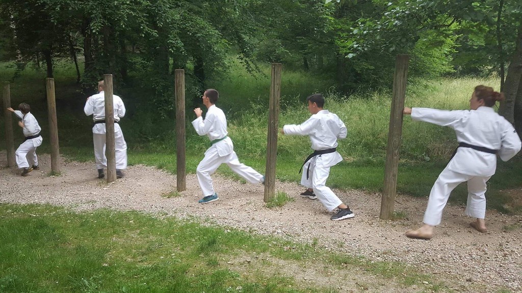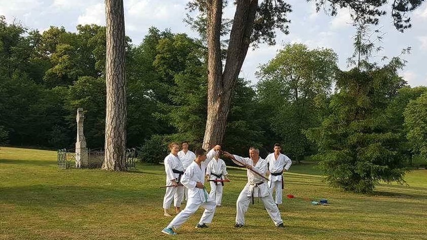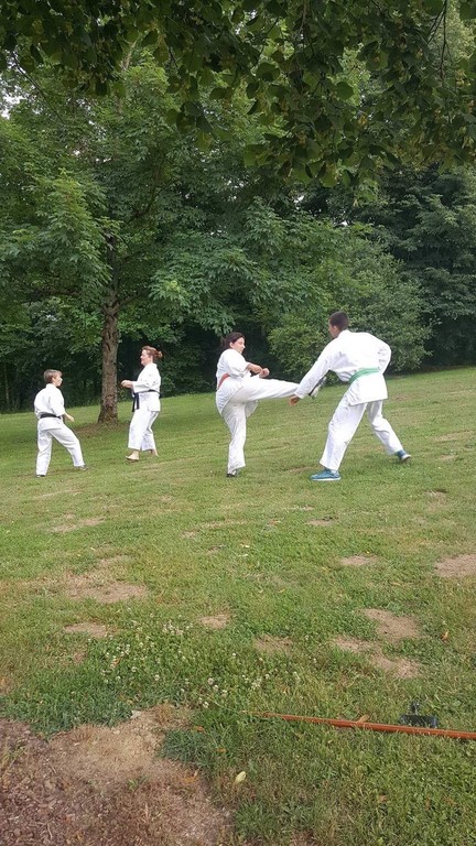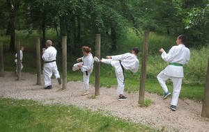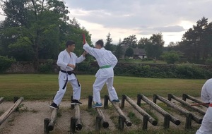 Un cours de karaté à l'extérieur dans le cadre verdoyant du Parc de Vabre et de son parcours de santé....