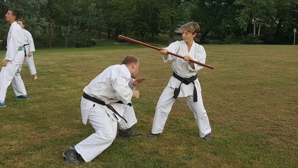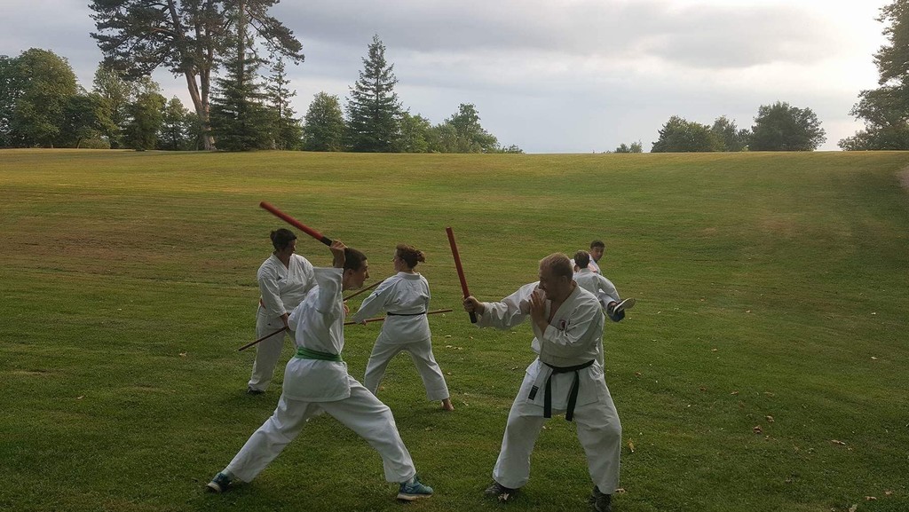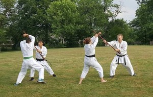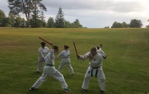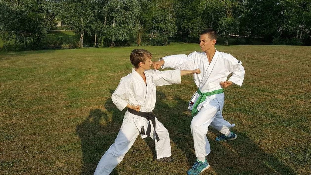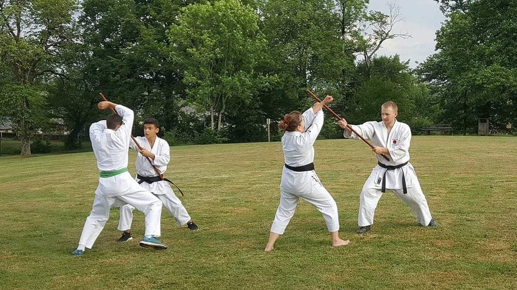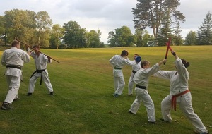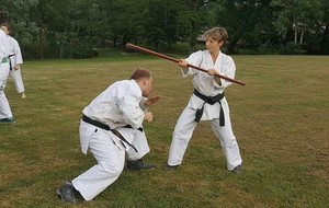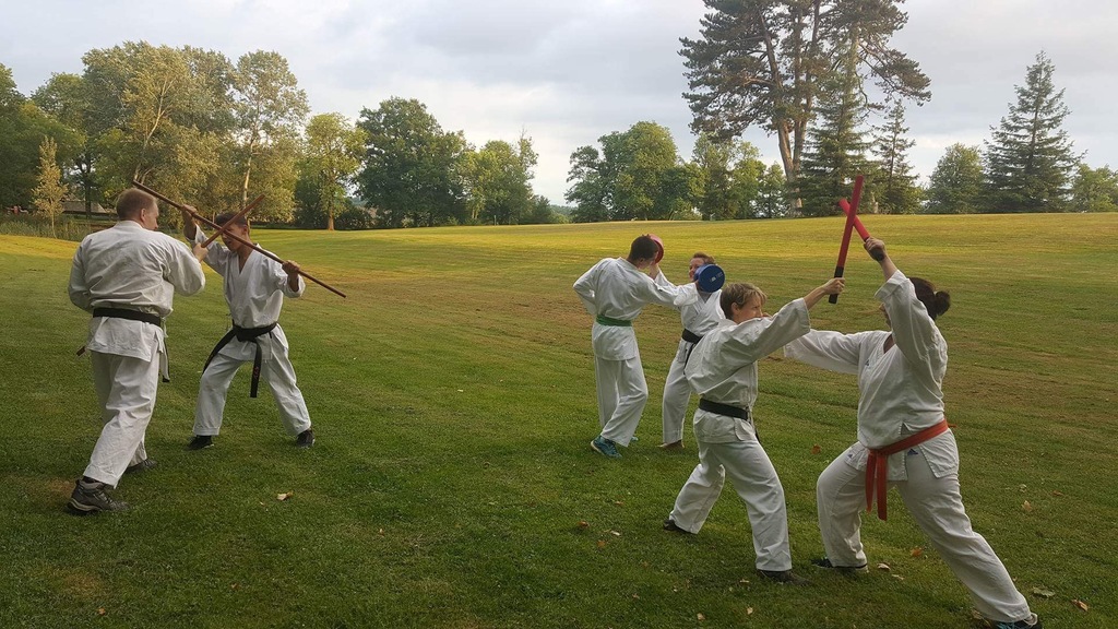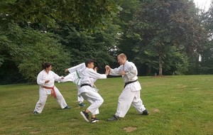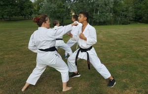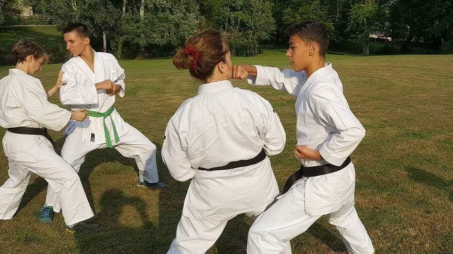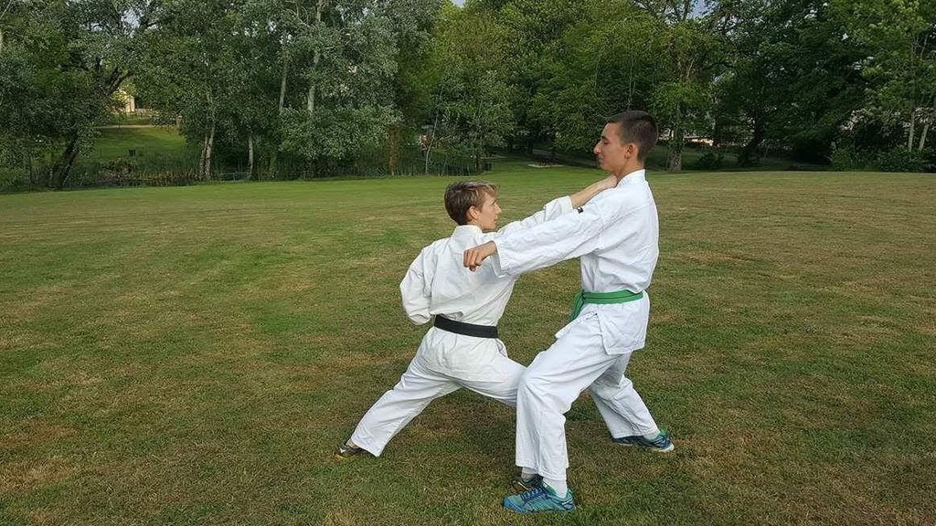 Un cours de karaté à l'extérieur dans le cadre verdoyant du Parc de Vabre et de son parcours de santé....