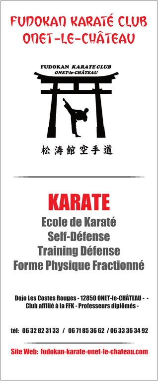 Une nouvelle activité est proposée pour la saison 2018-2019 aux licenciés du Fudokan KC Onet-le-Chateau les mercredis de 19h15 à 20h15.