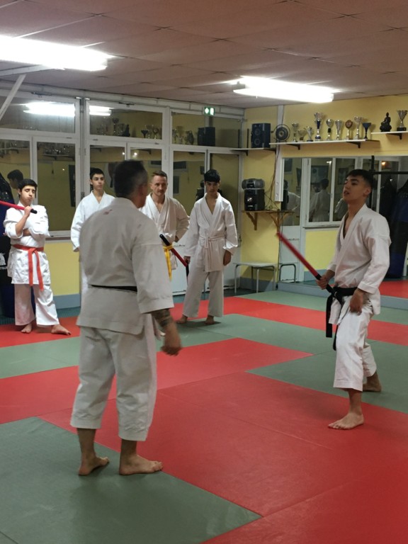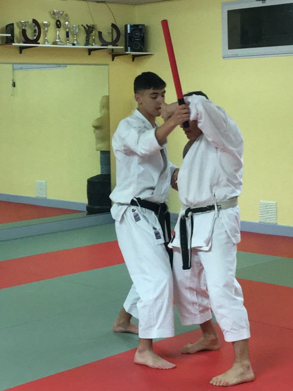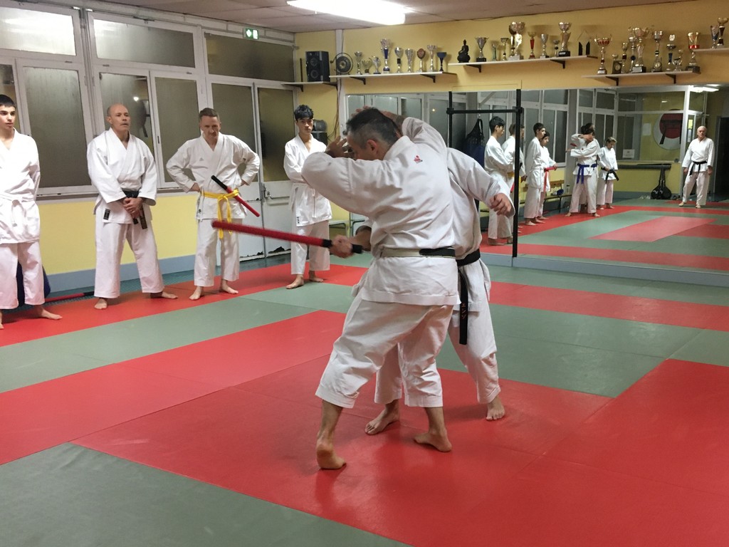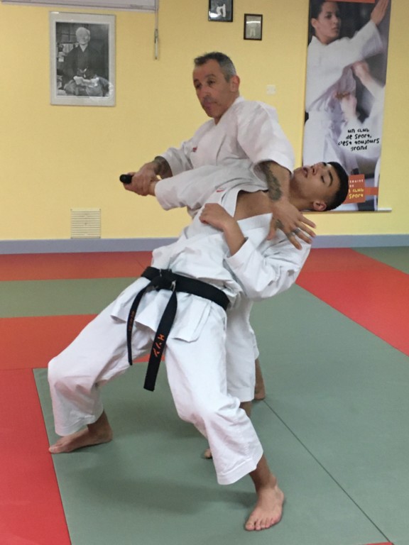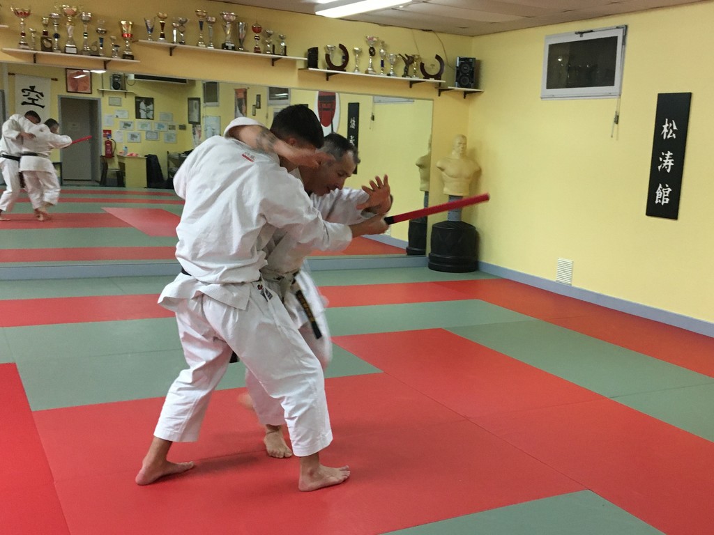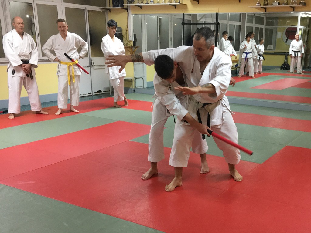 Attaques avec matraque verticale descendante et oblique descendante.... exemples d'applications de défenses adaptées...