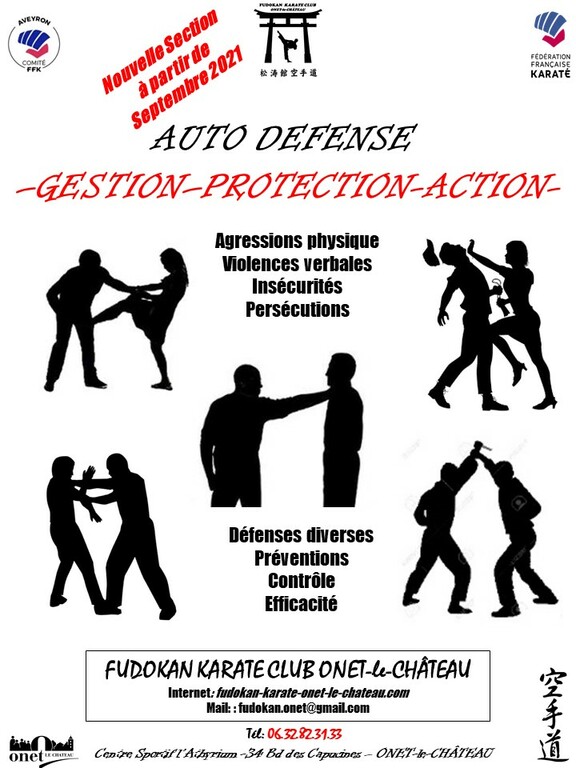 Une nouvelle activité sera proposée au sein du Fudokan Karaté Club Onet-le-Château. Cette section AUTO DEFENSE sera ouverte à toutes les personnes de +16 ans (sportifs ou nons) les Vendredis de 19h45 à 21h15.