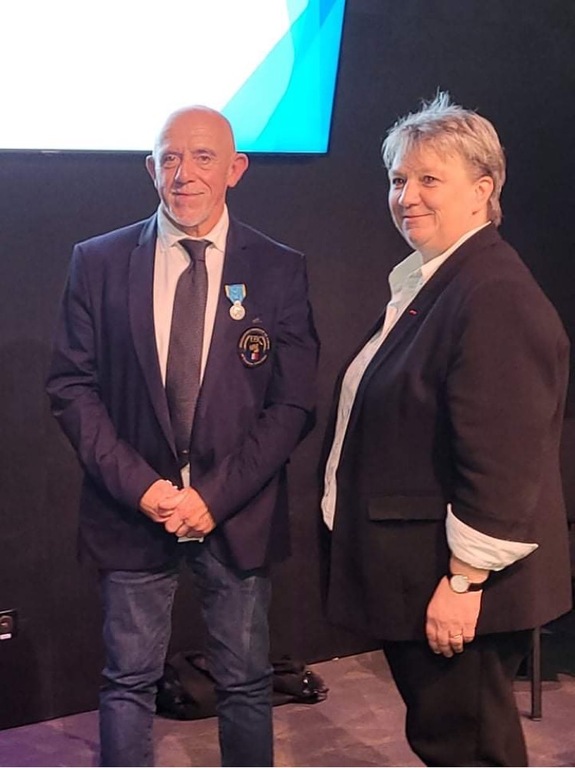 Remise Médaille d'Argent Jeunesse, Sports et Engagement Associatif le18/02/22 à Bernard ALBOUY par préfète Aveyron