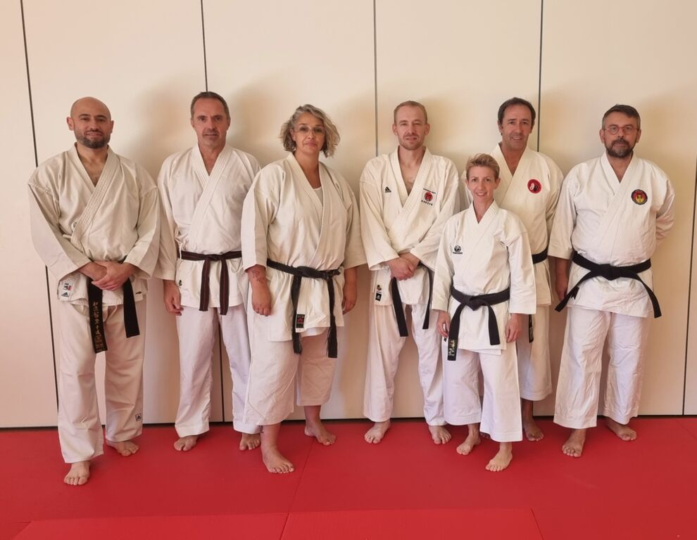 Informations et mises en pratique de la nouvelle règlementation 2023/2024 de l'arbitrage combats et katas dirigée par Cécile JOUSSEAUME (responsable régionale Occitanie arbitrage) suivi par les responsables départementaux, arbitres et coachs. 6 participants aveyronnais dont Roberto (responsable départemental Aveyron), Benoît arbitre national et Céline arbitre régionale et coach du club. Ils étaient accompagnés des représentants des clubs de Bozouls, ASPTT Rodez et Villefranche-de Rouergue.
